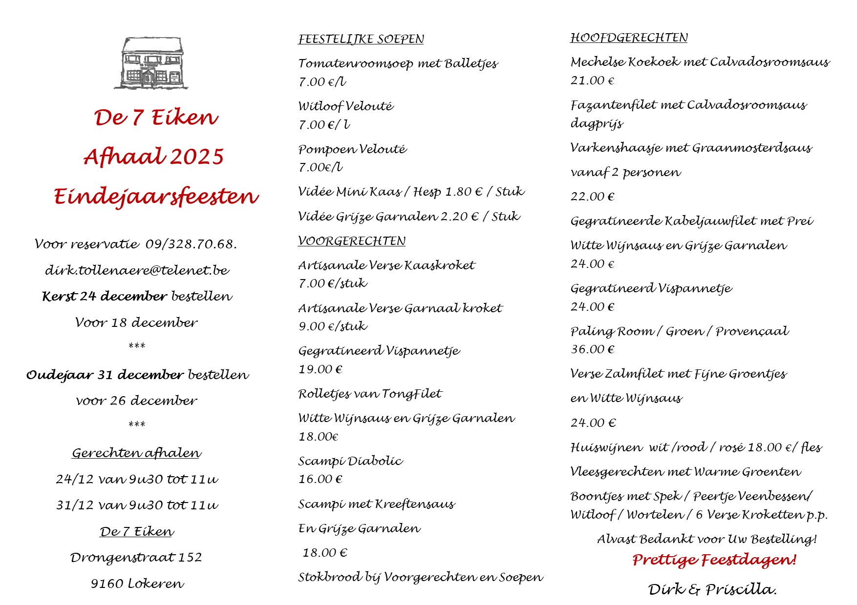 Wij verheugen ons erop, u met onze smakelijke maaltijden te verwennen en van uw bezoek echt iets bijzonders te maken. Restaurant met wifi - Onze Belgische keuken biedt een groot aantal lekkere, met liefde bereide maaltijden. Bovendien serveren wij enkele suggesties die aan het seizoen aangepast worden. Komt u voor de lunch op vrijdagmiddag of voor het avondeten bij ons langs en geniet van een fijne avond. U bent bij ons van harte welkom. Komt u gewoon langs. Bij ons is het mogelijk met Master Card of VISA of contant te betalen. In onze ruimte kunt u fantastische feestje vieren. (max 50 personen) Voor uw besloten evenement staan wij graag ter beschikking.